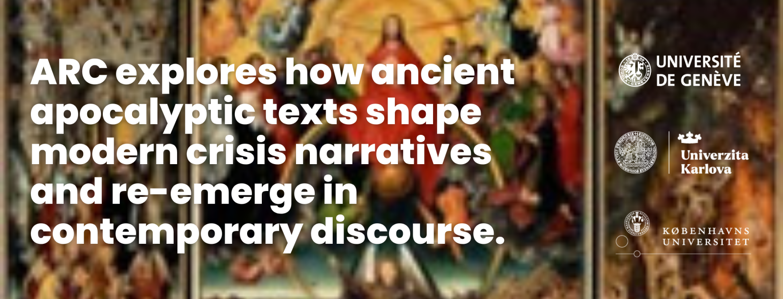 At the intersection of teaching and research, ARC brings together scholars and students from the Universities of Geneva, Prague, and Copenhagen in an interdisciplinary collaboration drawing on the humanities and social sciences, religious studies, and discourse analysis. The project pays particular attention to the impact of apocalyptic narratives on international organizations and contemporary modes of crisis governance, especially within the Geneva international ecosystem. By developing comparative and critical tools, ARC seeks to enhance understanding of how crisis narratives shape collective perceptions, influence decision-making processes, and—when misread or strategically manipulated—contribute to fear, radicalization, and discursive polarization. In doing so, the project affirms the vital role of the humanities in addressing contemporary European and global challenges through critical engagement with the languages of crisis.