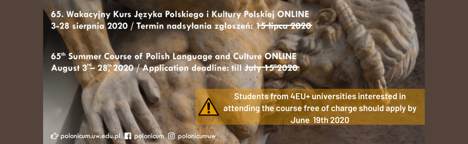 This summer, Polonicum, the Polish Language School of the University of Warsaw, will offer a summer course on Polish language and culture in an online format. The course will run from 3 to 28 August, 2020. The participation is free of charge for students from 4EU+ member universities.